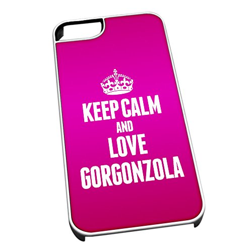 Bianco Cover per iPhone 5/5S 1133 Pink Keep Calm e Love Gorgonzola (Formaggio)