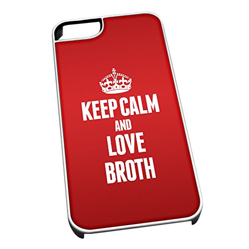 Bianco Cover per iPhone 5/5S 0870 Rosso Keep Calm e Love brodo