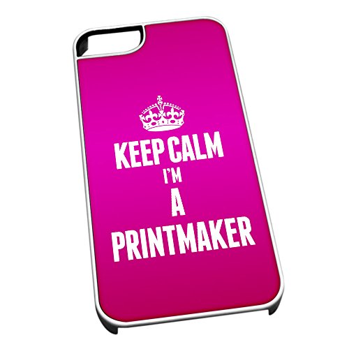 Bianco Cover per iPhone 5/5S 2654 Rosa con scritta Keep Calm I' m a Printmaker