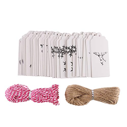 Bianco etichette regalo etichette,100 pezzi di carta regalo per Natale matrimonio cartellini con free 100 Feet color string e 100 Feet juta naturale (bianco)