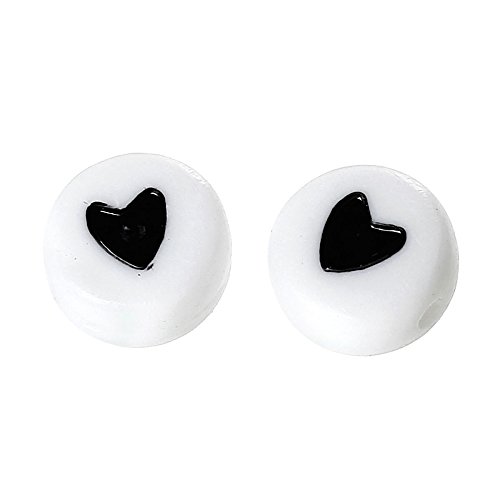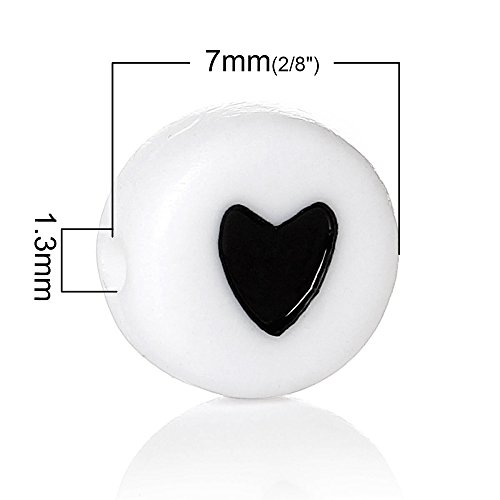 50 x bianco & nero Love Heart Valentine acrilico piatto rotondo perline 7 mm - Perline e ciondoli