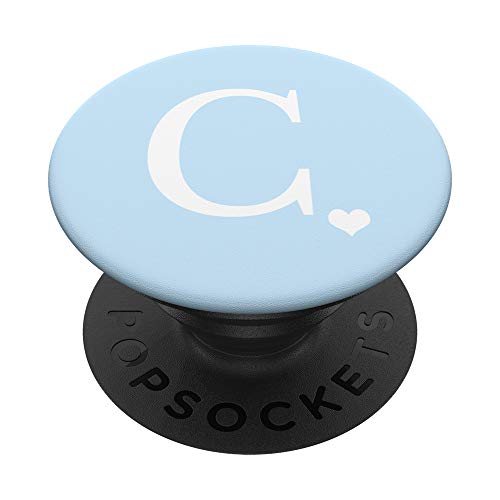 Bianco iniziale lettera C cuore monogramma su pastello azzurro PopSockets PopGrip Intercambiabile