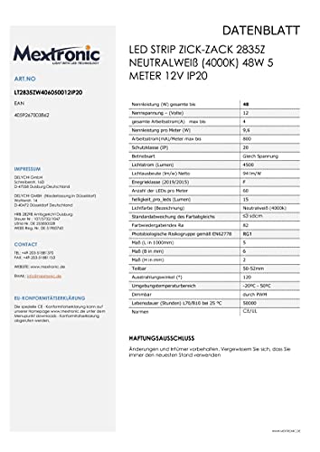 Bianco neutro LED Strip zigzag 2835Z (4000k) 48W 5m 12V IP20