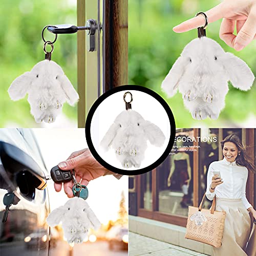 Bianco Portachiavi Peluche 1Pcs,Portachiavi Coniglio,Conigli Pelliccia Sintetica Soffici Portachiavi Peluche Coniglietto Bambola Ciondolo Ornamenti per Auto Borsa Chiave Decor