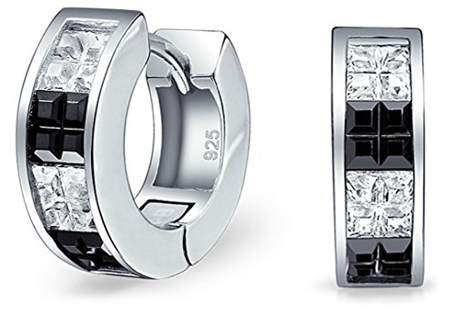Nero Bianco Principessa Taglio Canale Set CZ Checkboard Cubic Zirconia Kpop Huggie Cerchio Orecchini Uomini Donne Sterling Argento
