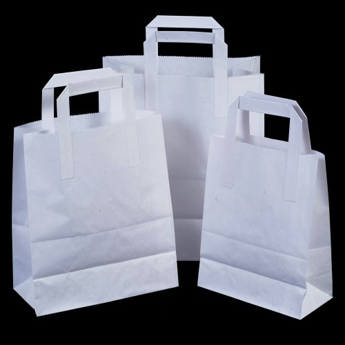 100 x bianco Sos Take Away / regalo carta sacchetto da trasporto con piatto MANIGLIE - 18cm x 23cm x 9cm (piccolo) unipack Marca - unibags