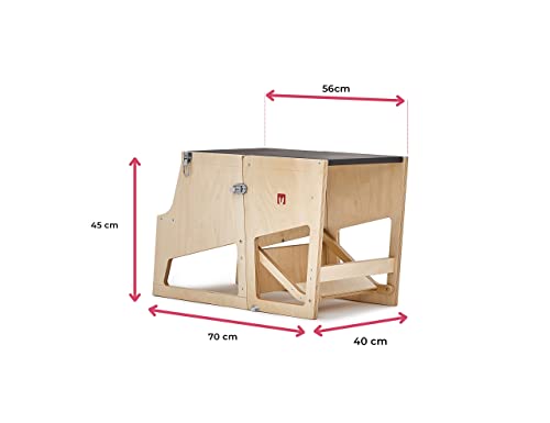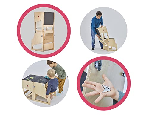 VERSALITÀ SENZA PARAGONI: La nostra Learning Tower Montessori è la soluzione ideale per sostenere il bambino in diverse attività. Grazie alla sua progettazione intelligente, può essere trasformata in tavolino, pedana o scrivania, adattandosi perfettamente alle esigenze in continua evoluzione del tuo piccolo. La possibilità di configurare la torre in diverse modalità offre ai bambini molteplici opportunità di gioco, esplorazione e apprendimento, stimolando la loro creatività e curiosità.