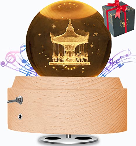 BIAOQINBO Carillon con Sfera di Cristallo, Rotazione a 360°, Vetro 3D K9, Base in Legno, Bagliore di Notte, con Proiezione, Miglior Regalo per San Valentino Natale Festa della Mamma