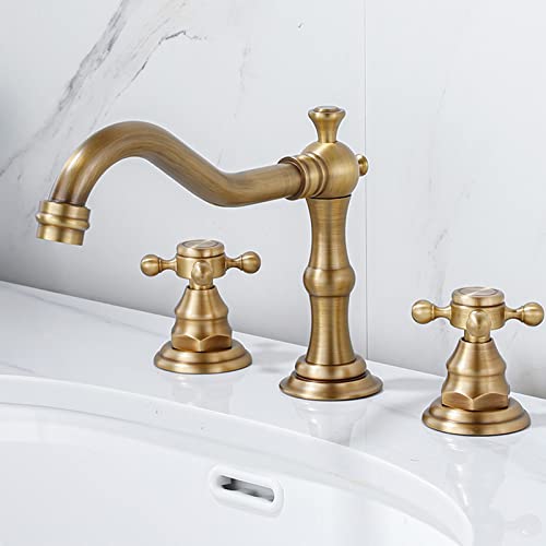 BiaoTeng Miscelatore Lavabo Bagno 3 Fori,Rubinetto Bagno Lavabo Ottone Anticato,Due Maniglie,Rubinetto Lavabo Ottone Antico 3 Fori,Miscelatore Bagno Nero Vintage,Antico