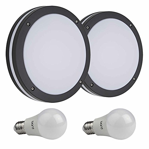 Biard E27 rotondo Outdoor Bulkhead IP54 luce di sicurezza giardino moderno lampada da parete con 9 W lampadine LED - Confezione da 2