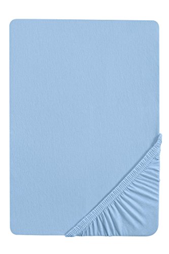 biberna 0077144 Lenzuolo (altezza materasso max.22 cm), cotone pettinato, morbidissimo Jersey fine 1x 180x200 cm > 200x200 cm, glace bleue