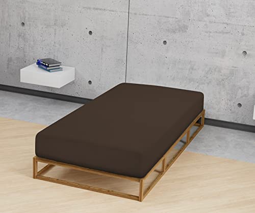 Biberna 0077155 Lenzuolo Jersey (Altezza Materasso max. 22 cm) 1X 90X190 cm > 100X200 cm, Topazio / Mocca