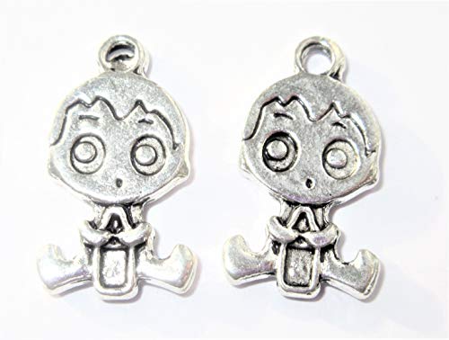 5 x Baby Boy con biberon in argento tibetano doppio charm pendente perline