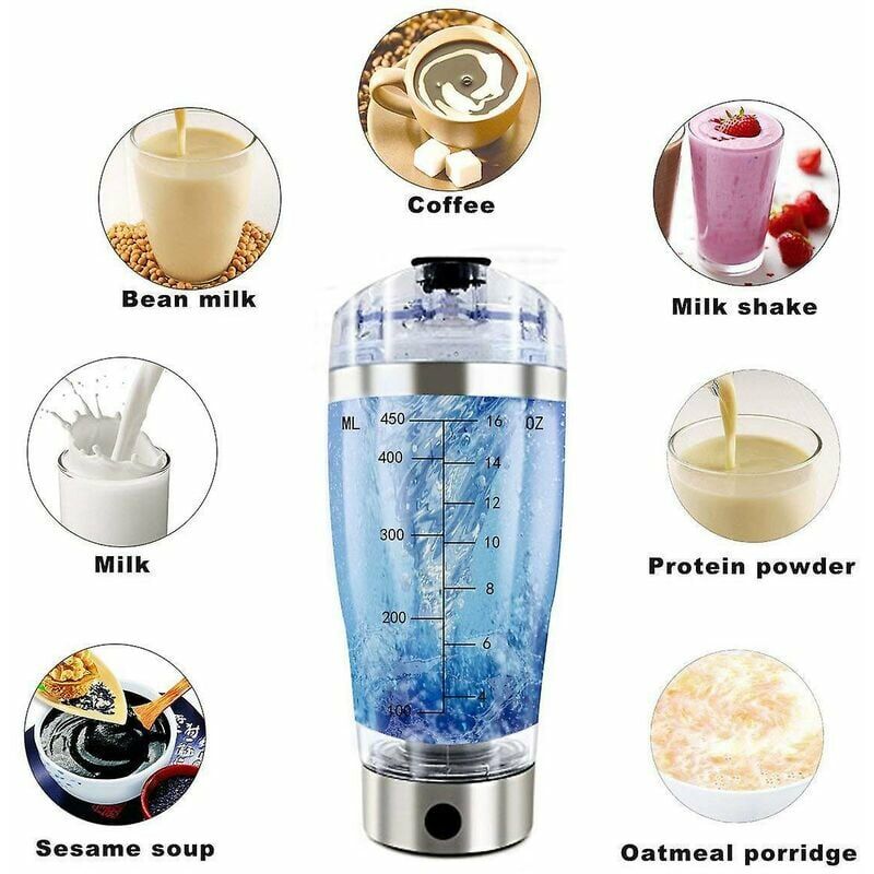 Avvertenze: 1. Non alterare la pala dell'elica. 2. Non svitare la manopola della tazza di miscelazione. 3. Non bere senza coperchio sulla tazza. 4. Il mancato rispetto di queste regole può comportare un prodotto difettoso a spese del consumatore. 7.87 Diametro bocca tazza: 8.5cm / 3.35 Diametro fondo tazza: 6cm / 2.36 < br/>Peso totale: 530 g / 18.70 oz Tipo di ricarica: connettore USB 2.0/3.0 (DC 5 V). Batteria: 2 batterie ricaricabili AAA Li Capacità di ricarica: tazza: 450 ml/16 once La confezione include: 1 bottiglia shaker, 1 cavo USB, 1 scatola.