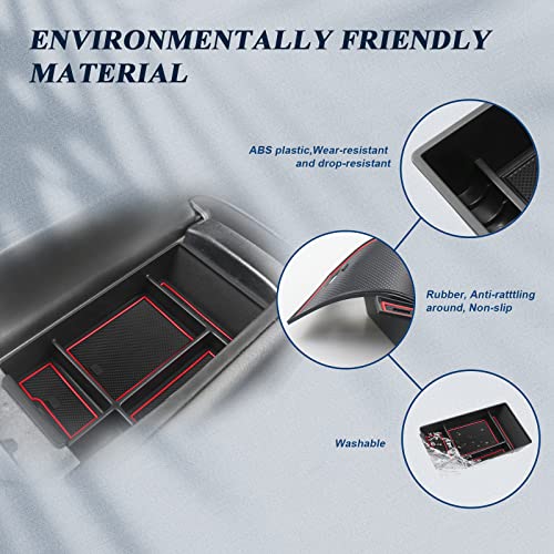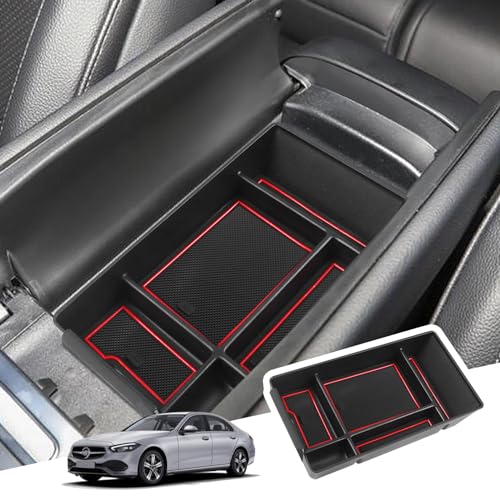 BIBIBO bracciolo auto con tappetino Scatola Portaoggetti del Bracciolo Central Console Armrest Storage Box per Mercedes-Benz Classe C W206 2021-2023, Rosso