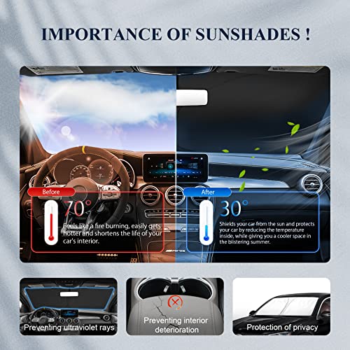 【Mantiene fresco】La visiera interna del parabrezza vi aiuterà a proteggere l'interno della vostra auto e, grazie al materiale di alta qualità, mantiene una temperatura piacevole anche dopo ore di luce solare