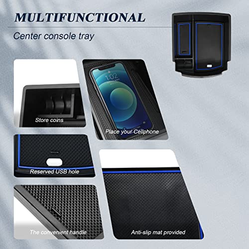 BIBIBO Portaoggetti Bracciolo per Kona Hybrid/N Line 2017-2022, Scatola di Immagazzinaggio, Auto Accessori Originali Interni Organizer, Storage Box con tappetino antiscivol (Blu)