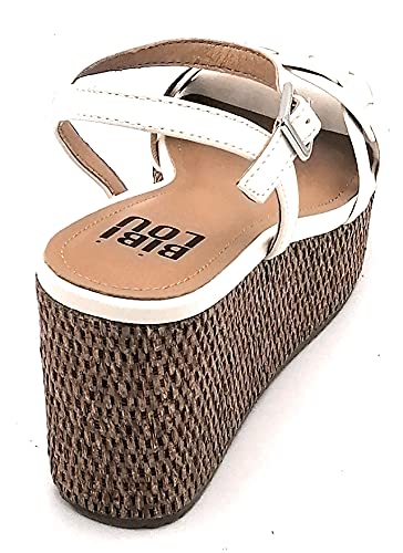 Bibilou 869p11 Sandalo Pelle Avorio Cinturino Zeppa Alta Paglia Intrecciata U - Taglia Scarpa 37 EU Colore Avorio