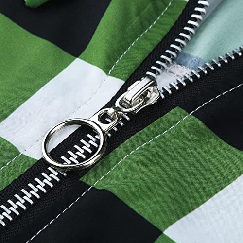 BIBOKAOKE Karo, camicia estiva alla moda, a quadretti, patchwork, per il tempo libero, da uomo, a maniche corte, per l'uso quotidiano, da lavoro, con cerniera e cerniera, Verde 20., XXL