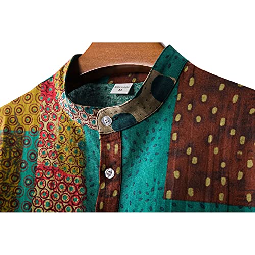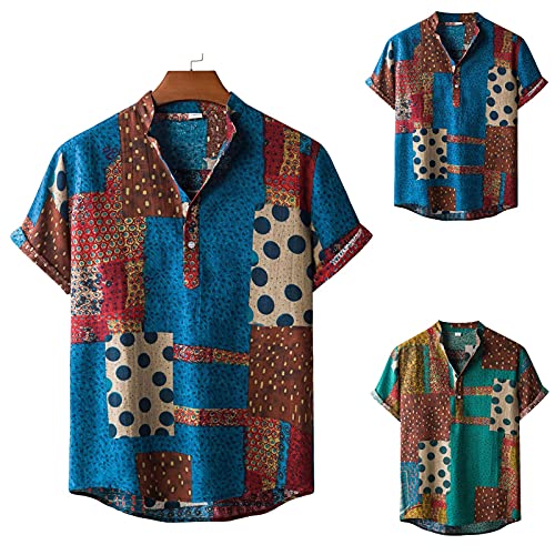 BIBOKAOKE Camicia a maniche corte da uomo, effetto lino, per il tempo libero, casual, da lavoro, hawaiani, multicolore, con stampa a risvolto Henley Shirt Holiday, camicia da spiaggia vintage, 35, M