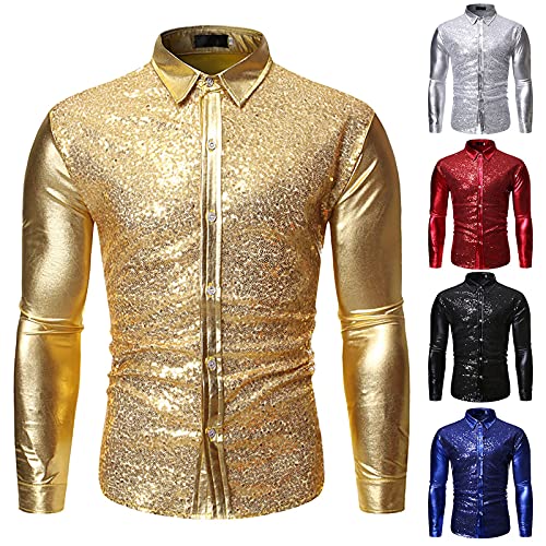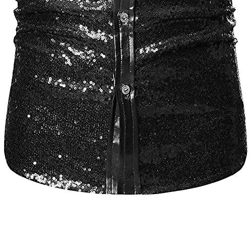 BIBOKAOKE Maglia a maniche lunghe da uomo con paillettes multicolore e paillettes abbronzanti per feste, balli di fine anno, Nero., L