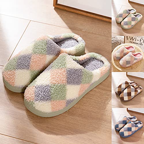 BIBOKAOKE Pantofole unisex in peluche a quadri, in memory foam, da uomo e da donna, con calda imbottitura, antiscivolo