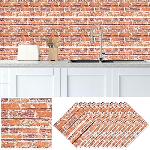Bibykivn Carta da parati 3D in mattoni,10 pezzi di carta da parati autoadesiva Vintage,35 x 38cm,Stickers Design Moderno,impermeabile,per Cucina, Bagno, Soggiorno, Salone, Ufficio (Giallo arancio)