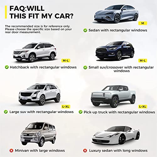 【ADATTA ALLA MAGGIOR PARTE DELLE AUTO】 La gamma di dimensioni della copertura della finestra aggiornata è alta 42-50 cm (16,5-19,68 pollici) e lunga 70-114 cm (27,5-44,88 pollici). Si prega di misurare effettivamente le dimensioni della finestra per fare acquisti. I tessuti ad alta elasticità sono adatti per oltre il 90% di berline, monovolume, berline, piccoli SUV, crossover e grandi SUV con finestrini curvi/rettangolari.