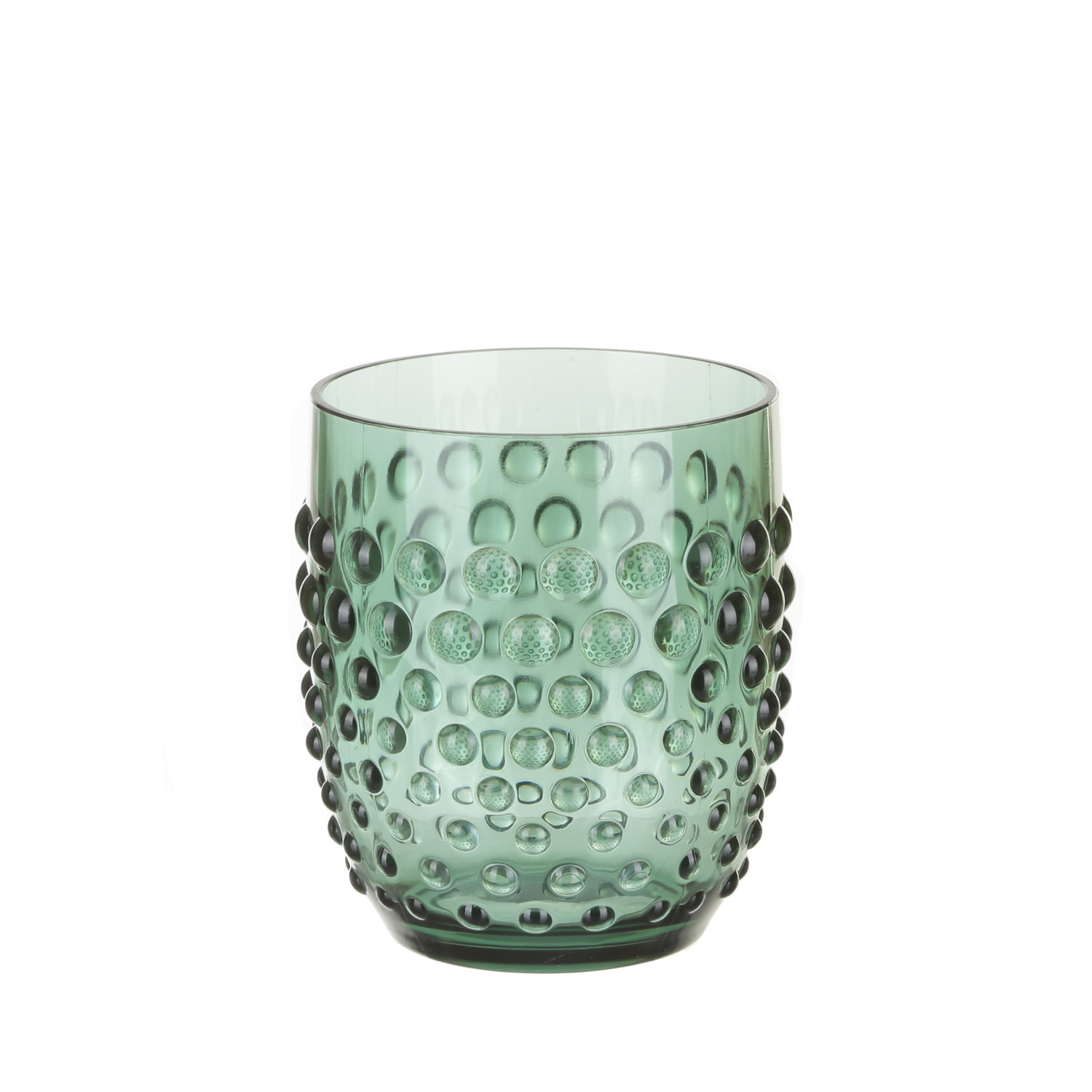 Dotted è la linea di bicchieri sfusi in plastica, caratterizzata da un decoro a rilievo a forma di gocce. La raffinata sfumatura verde porterà una nota di colore sulla tua tavola di tutti i giorni, gustando con stile anche un semplice bicchiere d'acqua. La composizione in plastica rende il bicchiere adatto anche all'uso esterno, per i tuoi pranzi e picnic in giardino anche con i bambini. Potrai creare un set coordinato in verde o acquistare il bicchiere sfuso in abbinamento agli altri colori della linea per personalizzare ogni posto tavola come più ti piace! Capacità: 430 ml. Dimensioni: diametro 8,5 cm, altezza 10,5 cm.