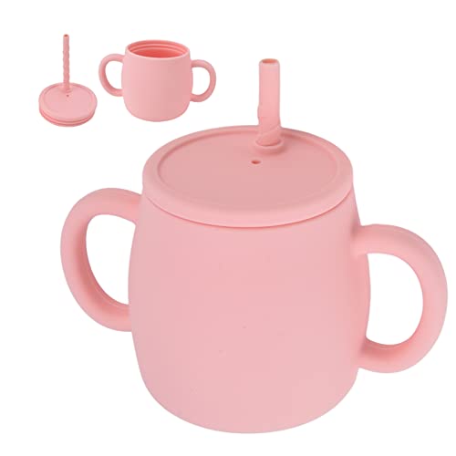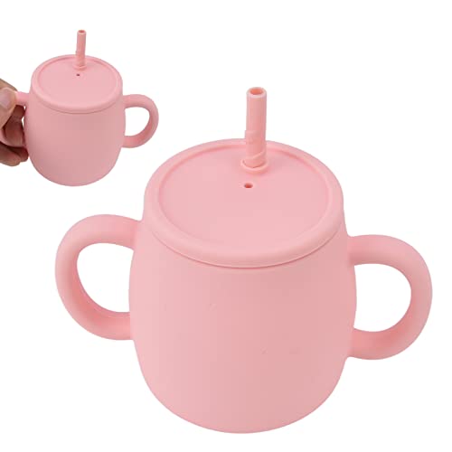 Bicchiere per L'apprendimento, Bicchiere per L'allenamento in Silicone con Cannuccia Bicchiere per Bambini con Cannuccia Bicchiere per L'apprendimento del Bambino con Doppi Manici Bicchiere per(rosa)