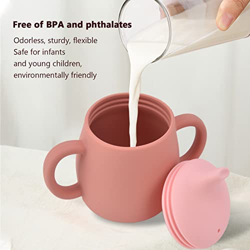 Bicchiere per Bambini, 280 Ml Bicchiere di Apprendimento per Bambini per Uso Alimentare Prevenire la Caduta Bicchiere in Silicone Portatile con Coperchio e Manici per Bambini di Età(Marrone rosato)