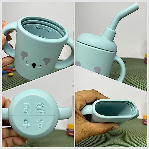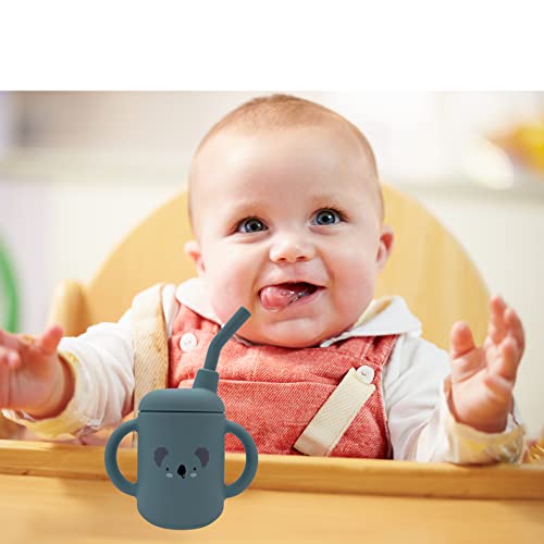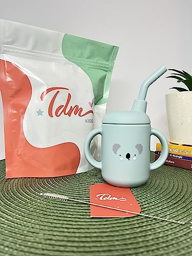 TDM Kids Bicchiere con Cannuccia Bambino in Silicone - Tazza con Beccuccio e Manici (Koala)