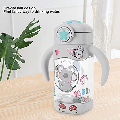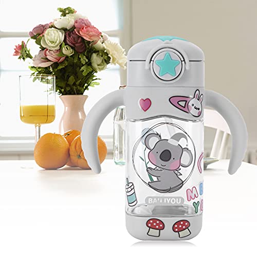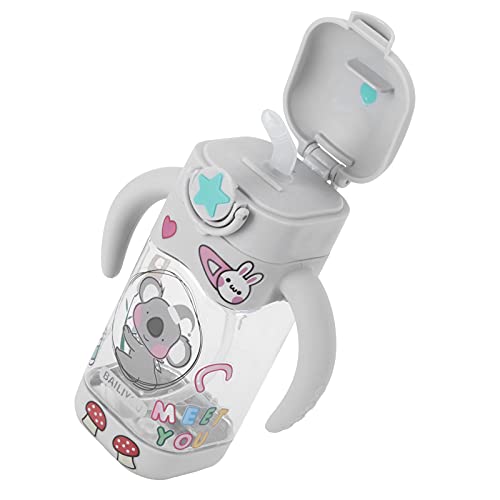Bicchiere con Cannuccia e Beccuccio Bicchiere per Bottiglia di Vetro per Bambini con Manici Bevande per Bambini Bottiglie D'acqua Adesivo Fai-da-te 400 Ml(grigio)