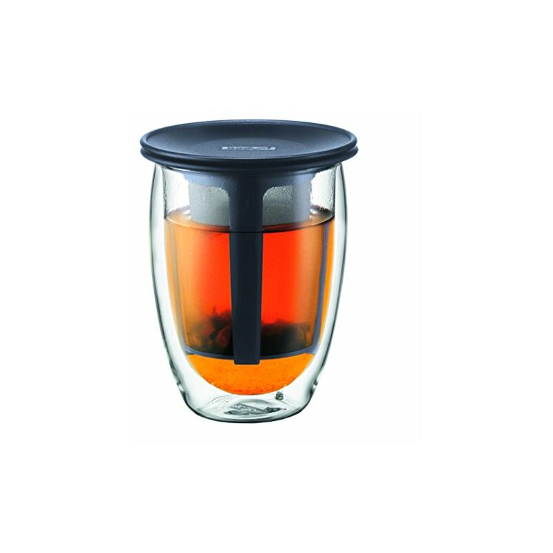 Bodum Tea For One Bicchiere da tè con filtro in plastica, a doppia parete, 0,35 l 1 - ConfezioneColor: Nero