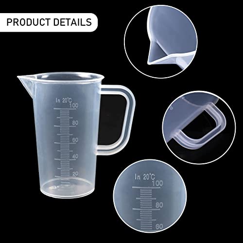 Bicchiere Graduato Plastica 100ML,FANNAS 2 Pezzi Trasparente Tazza Dosatrice con Manico Recipiente Graduato Tazza con Misurino Cucina,Adatto per le Misure di Laboratorio in Cucina