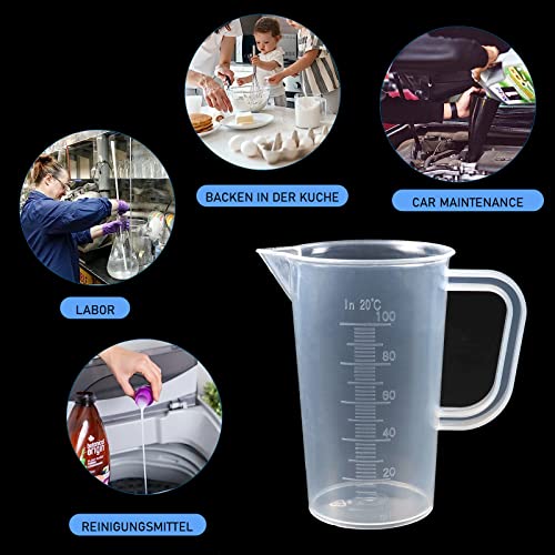 Materiale di Alta Qualità: Il nostro bicchiere graduato plastica è realizzato in polipropilene di alta qualità, robusto e durevole, sicuro ed ecologico, non tossico e insapore. Buona resistenza al calore, alle alte temperature e alle basse temperature, non si deformano facilmente. Sono resistenti alle cadute e alle abrasioni e non si rompono facilmente.