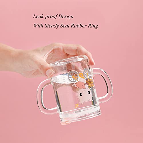Bicchiere da latte in vetro da 250 ml, con cannuccia in silicone e coperchio a tenuta stagna, bicchieri resistenti al calore, con doppia maniglia, con scala di valore, per acqua, latte, succo