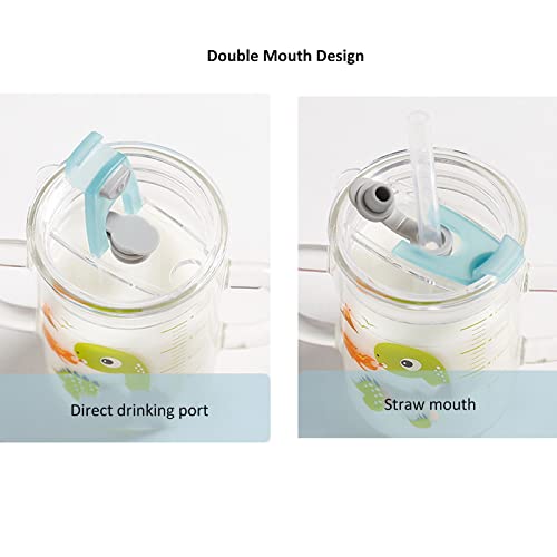 Doppi manici e segni di scala: i doppi manici ergonomici rendono facile per i bambini tenere e versare il cibo. Dotato di marchio di scala, stampato con tecnologia di stampa avanzata ad alta temperatura, trasparente e non facile da cadere. La scala precisa consente di sapere chiaramente quanta acqua i tuoi bambini hanno bevuto, assicurandoti che possano bere scientificamente.