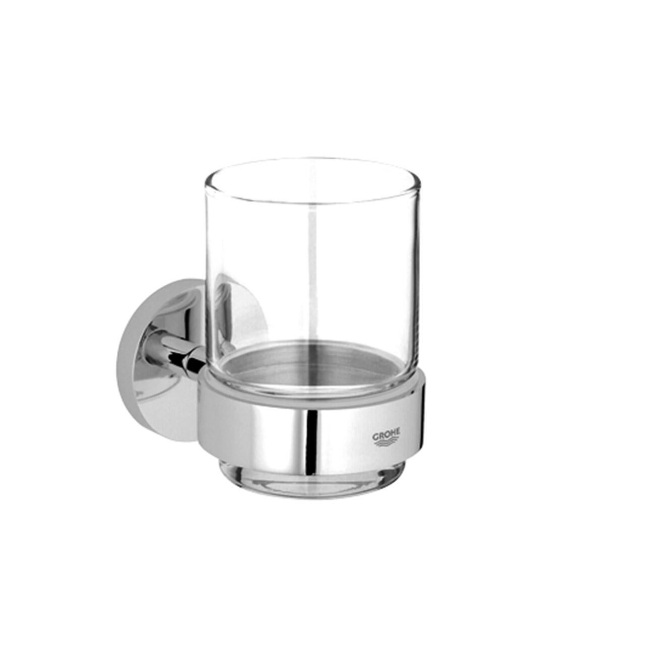 Bicchiere in vetro con supporto in ottone, ø 8 cm. Fissaggio a tassello