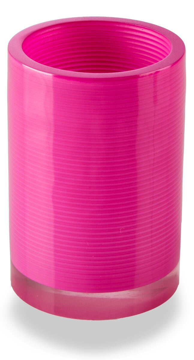 Bicchiere porta spazzolini in resina rosa;