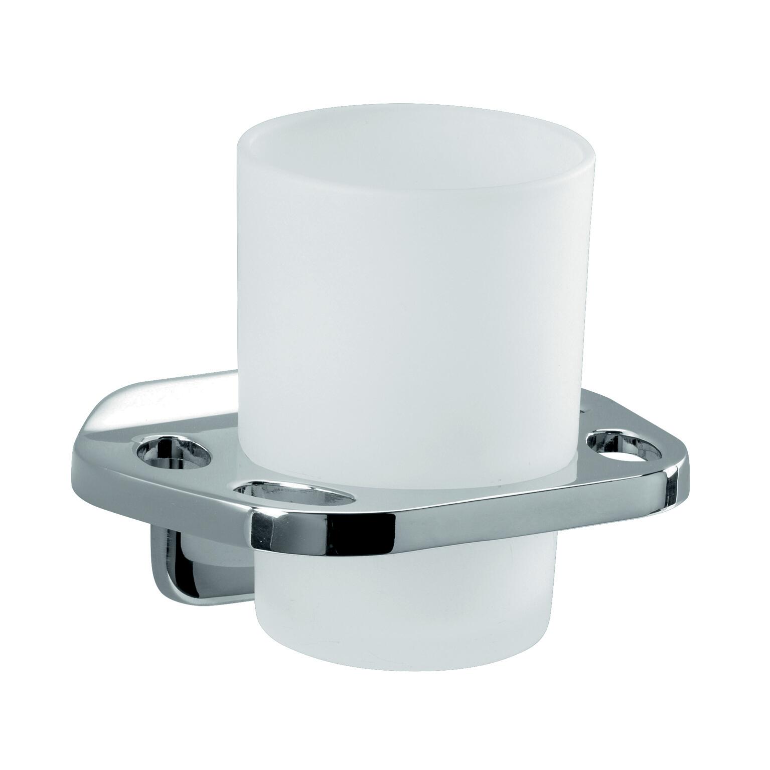 Bicchiere in vetro acidato e supporto in zama, L 11,7 x H 10,3 x P 8,7 cm. Fissaggio a tassello