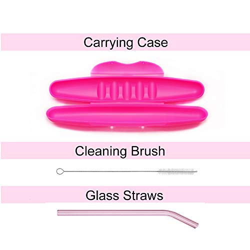 Bicchiere riutilizzabile Cannuccia con scatola solida privata Custodia protettiva Custodia protettiva e set di spazzole per la pulizia Perfetto per casa, BPA Free, Eco-Friendly (Rosa rossa)