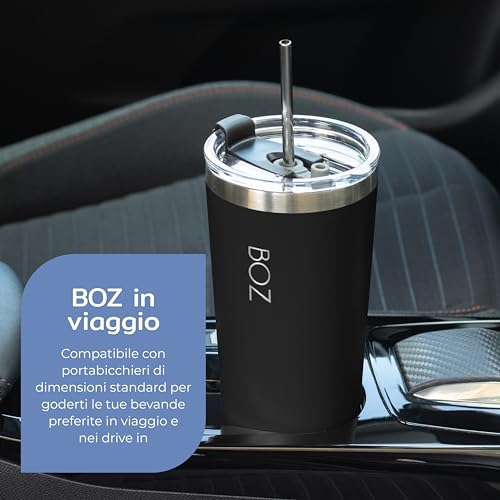 ✅ SORSEGGIA IN DUE MODI DIVERSI: Scopri le tazze termiche con cannuccia BOZ per sorseggiare con stile! Dotate di cannuccia e coperchio a scatto, sono adatte per goderti le tue bevande calde e fredde durante il tragitto casa-lavoro, ma anche per le escursioni del weekend. Che si tratti di caffè, tè, frullati o acqua ghiacciata, il coperchio a prova di perdite mantiene la tua bevanda come appena fatta.