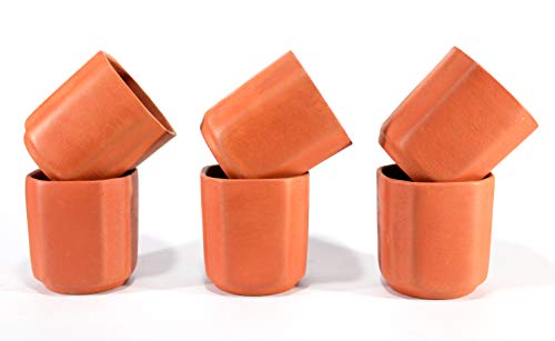 KLEO - Bicchieri da acqua fatti a mano, in argilla di terra, set da 6 pezzi, per succhi di latte, tè, caffè, bevande etniche, ecologiche, in terracotta