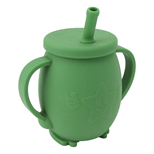 Bicchieri per Bambini da 230 Ml Bicchieri da Addestramento in Silicone con Cannucce in Silicone Maniglie con Coperchio A Prova di Perdite A Prova di Fuoriuscite per Bambini di età (Verde)