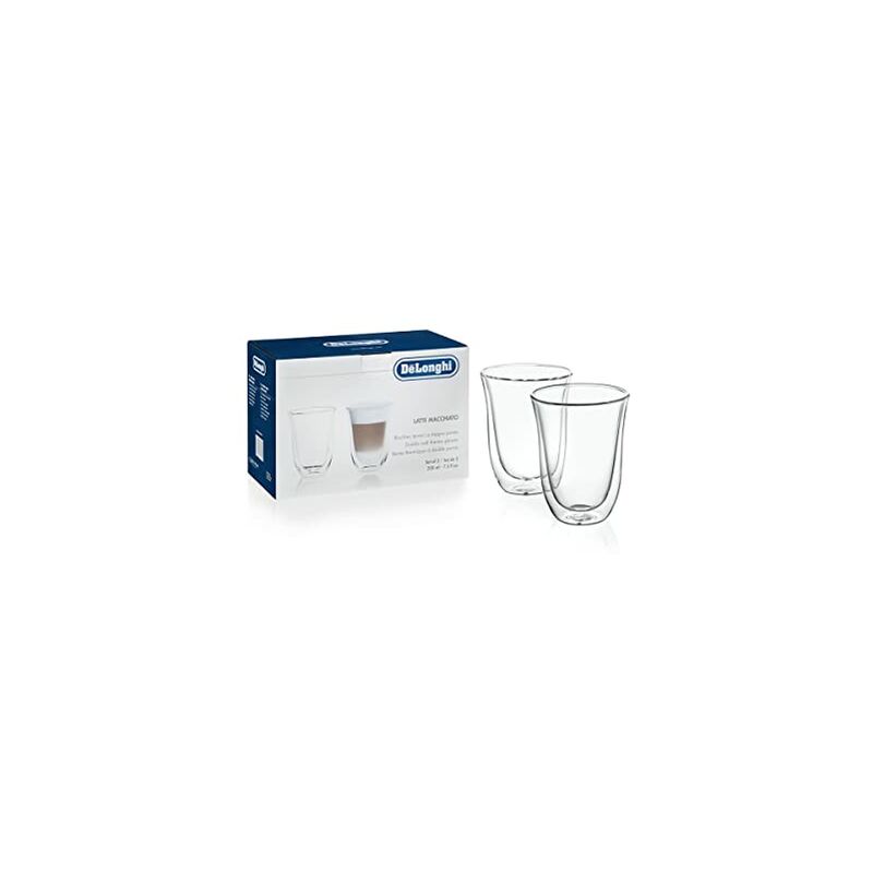 DeLonghi Bicchieri Cappuccino, Tazze di Vetro per Latte Macchiato, Vetro Borosilicato ritenzione del calore, Capacità 220ml, Set di 2, DLSC312, Trasparente 2 Unità (Confezione da 1)Size: 2 Unità (Confezione da 1);