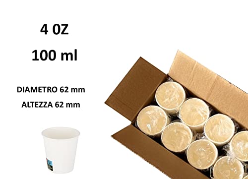 Bicchieri di Carta Bianchi Bicchiere in cartoncino Bianco Monouso Ecosostenibile 100% BIO 100 ml / 4 oz altezza 6 cm diametro 62 mm (50)