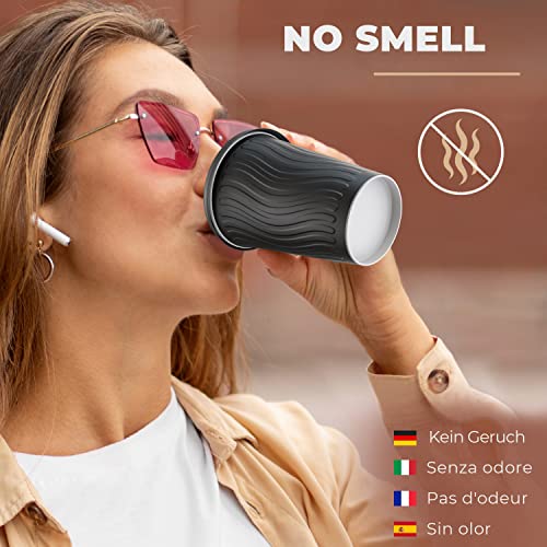 100 Bicchieri Carta 360 ml Doppia Parete Nero Ripple - Tazza con Coperchio di 12 Oncia per Prendere Il caffè con Le Stiratrici di Legno per Il Prendere Il caffè, Il tè, Le Bevande Calde