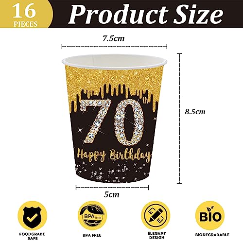 16 bicchieri di carta usa e getta per 70° compleanno, colore oro nero, per uomini, compleanni, feste, decorazioni per il 70° compleanno, per lui, lei, uomini, donne, regali per feste