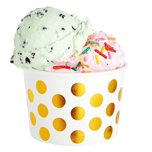 Bicchieri di carta usa e getta per gelato, 50 pezzi, per dessert, gelato, yogurt, feste - Colore: Pois dorati, da 236 ml.